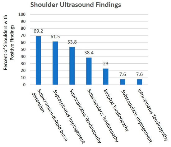 - Finley, M.; Ebaugh, D.; Trojian, T. Agreement of Musculoskeletal Ultrasound and Clinical Assessment of Shoulder Impairment in Manual Wheelchair Users With Various Duration of Spinal Cord Injury. Arch. Phys. Med. Rehabil. 2018, 99, 615–622. [Google Scholar] [CrossRef]