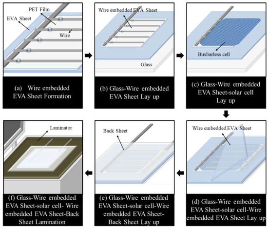 Wire-embedded EVA sheet module process flow.
