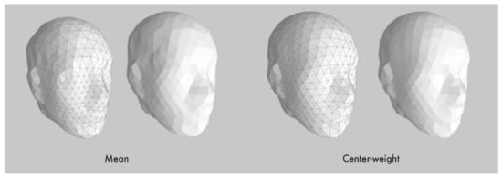 The center-weight method was compared to the mean-value method (Figure 5). However, the mean-value model was found to be more uneven than the center-weight method model, and it was difficult to distinguish any notable difference.