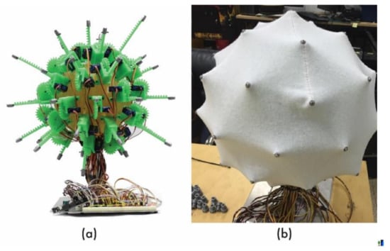 - Follmer, S.; Leithinger, D.; Olwal, A.; Hogge, A.; Ishii, H. InFORM: Dynamic Physical Affordances and Constraints through Shape and Object Actuation. In Proceedings of the 26th Annual ACM Symposium on User Interface Software and Technology, St. Andrews, Scotland, UK, 8–11 October 2013; pp. 417–426. [Google Scholar]