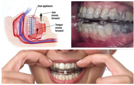 - Basyuni, S.; Barabas, M.; Quinnell, T. An update on mandibular advancement devices for the treatment of obstructive sleep apnoea hypopnoea syndrome. J. Thorac. Dis. 2018, 10, S48–S56. [Google Scholar] [CrossRef]