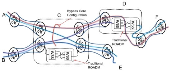 - The bypass cores should be integrated with the WDM system that consists of the residual cores with traditional ROADM switching. The integration allows the bypass core to serve as a part of optical links. Without the integration, bypass cores will impact network flexibility, especially when core numbers are low. The integration requires connecting bypass cores back to the ROADM system at the end of the bypass cores.