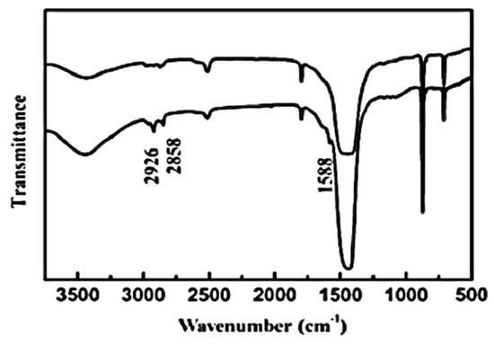 Fourier transform infrared spectra of calcium carbonate nanoparticles adapted from Chen et al., 2010.