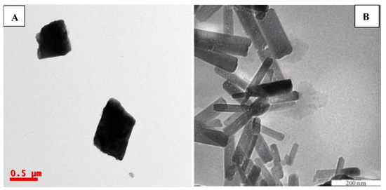 Transmission electron microscopic images of (A) calcium carbonate of microparticles and (B) aragonite nanorods adapted from (Islam et al., 2012).