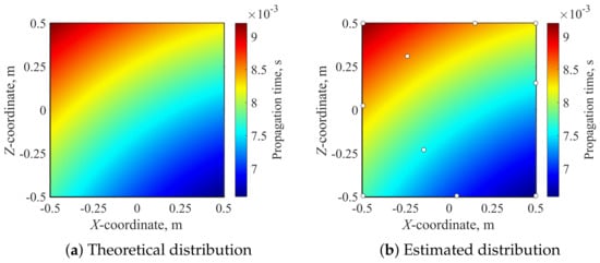 Finally, , corresponding to the overall propagation time or attenuation rate distributions of 40,000 grid points, can be reconstructed by substituting into Equation (27).