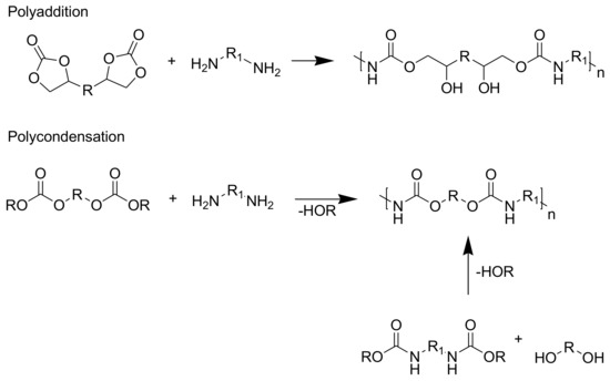 Comparison of NIPU structure produced by polyaddition of bifunctional cyclic carbonate and diamine as well as polycondensation [80,149].