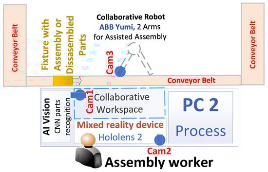A scheme of the experimental assisted assembly work cell with CNN processing unit, mixed reality device and collaborative robot.