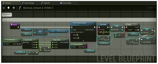 The basic algorithm is coded in the Blueprint Scripting Language, an example of subprogram for 3D virtual part rotation in Z axis is shown in Figure 7.