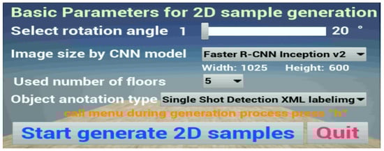 The Unreal Engine application setup of basic parameters for automated generation of 2D samples training and testing set.