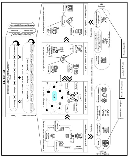 Knowledge Graph-centric Conceptual Framework of Cognitive Digital Twin for Building Lifecycle Management (CDTsBLM) (adapted from the developed framework by Lu et al. [48] and Abburu et al. [6]).