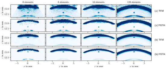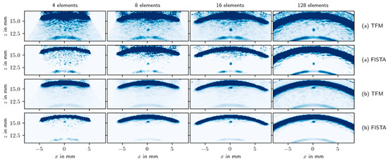- Pérez, E.; Kirchhof, J.; Semper, S.; Krieg, F.; Römer, F. Total focusing method with subsampling in space and frequency domain for ultrasound NDT. In Proceedings of the 2019 IEEE International Ultrasonics Symposium (IUS), Glasgow, UK, 6–9 October 2019; pp. 2103–2106. [Google Scholar]