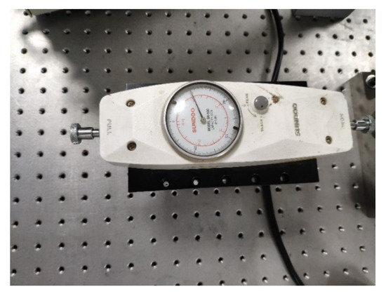 In this experiment, the axial load, which is provided by the SN-500 pointer thruster produced by SUDOO company, is applied on the side of the thrust bearing to simulate the actual axial force of the system. The structure of pointer thruster is shown in Figure 19, where the limit load is 500 N and the resolution is 2 N, the pointer thruster is fixed to the antivibration platform through the supports, and the axial force to the bearing is applied by rotating the button.