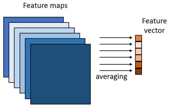 The main idea behind global average pooling (illustrated in Figure 5) is to enforce correspondences between feature maps and the number of predicted semantic categories by taking the average of each feature map and compiling a feature vector. Thus, arbitrary sized images can be put to the input of a CNN. Other advantages are that overfitting can be avoided with this layer and robustness can be increased against spatial translations of the input [63].