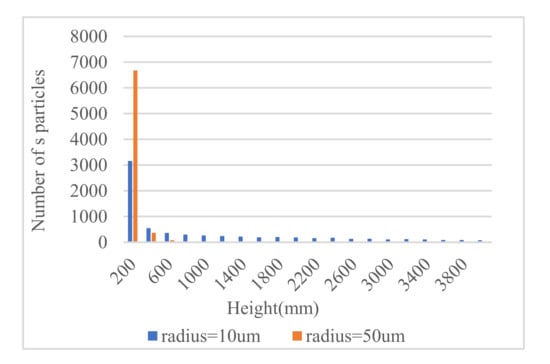 In order to further analyze the comparison of particle distribution in the air, the results of particle numbers in the height range of 600 mm–4000 mm at different times are compared.
