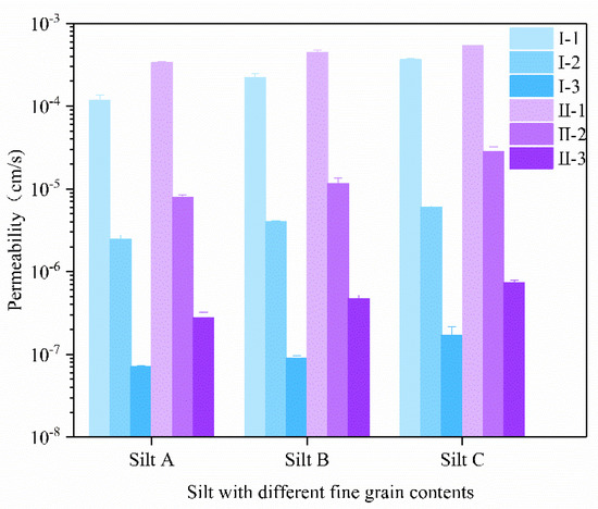 Effect of different fine particle content on permeability coefficient.