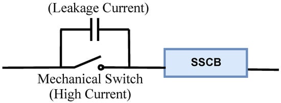 One of the main drawbacks of SSCB is the lack of galvanic isolation in the open state. This can be overcome by adding an auxiliary circuit based on two mechanical switches in series with the SSCB [] (see Figure 6). This circuit is opened after the trip of the SSCB, guaranteeing complete isolation between load and supply. Galvanic isolation of SSCBs is a key feature for achieving fault detection, isolation, and DCMG reconfiguration. The mechanical switches that provide physical isolation are as follows: (1) a mechanical switch to handle the high current that appears through the SSCB when the SSCB interrupted the fault current, and (2) a secondary mechanical switch for interrupting the leakage current during isolation [,,].
