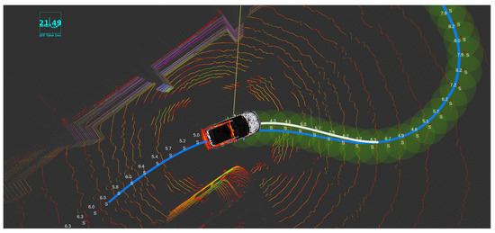 Furthermore, the egomotion planning of the car is implemented and tested with Autoware package built-in modules (Shown in Figure 10). To meet this requirement, different approaches were tested, and as a result, Model Predictive Controller (MPC) was the best candidate to be used for path planning. Another approach is based on a “pure pursuit principle”, which takes into account only the trajectory to be pursued and generates control using a simple PID controller.