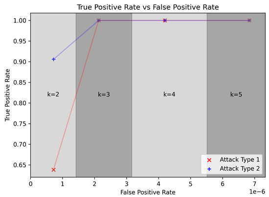 True positive and false positive rate of IDS for two attack types.
