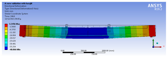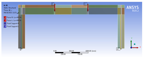 The FE models used in this study were verified against the field measurements of existing samples in Guangzhou 510006, China, which were strengthened using post-tensioning techniques by Zou J. et al. [1]. These measurements are shown in Figure 5. Laboratory tests were performed under the same conditions using ANSYS WORKBENCH 19.2 for beams. This was the main part of our paper (frame), as mentioned in the previous section on the sample design (see Figure 2a and Figure 6).