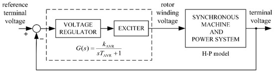 - Heffron, W.G.; Phillips, R.A. Effect of a Modern Amplidyne Voltage Regulator on Underexcited Operation of Large Turbine Generators [Includes Discussion]. Trans. Am. Inst. Electr. Eng. Part III Power Appar. Syst. 1952, 71, 692–697. [Google Scholar] [CrossRef]