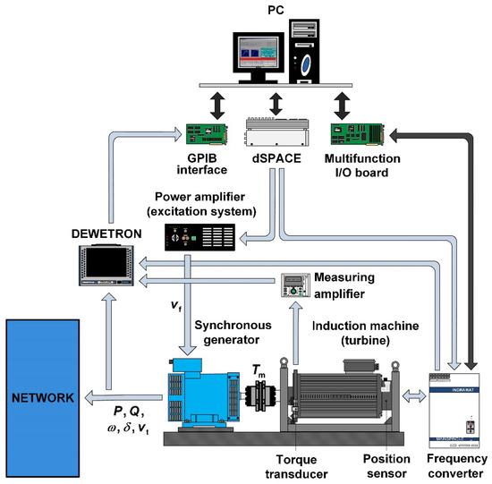 Although the constructions of synchronous generators, control concepts, and network connections have changed significantly over time, we do not find recent publications in the literature in which local oscillation frequencies are estimated based on the analysis of a large number of synchronous generators. An additional research gap is that there are no publications where the expected damping of these oscillations is evaluated in detail. A mode’s damping influences how quickly (and if) a related oscillation subsides. Therefore, damping is the parameter tied most closely to system stability [13]. The need for knowledge in this area is confirmed by recent publications that address the damping of oscillations resulting from new solutions and equipment according to synchronous generators. The damping of oscillations produced due to the introduction of a photovoltaics virtual synchronous generator is considered in [14]. Reference [15] studies the oscillations of wind farms’ synchronous generators. Reference [16] describes the implementation of an energy storage system for the damping of electromechanical oscillations of synchronous generators. References [17,18,19] describe the effects of control appliances on the power grid frequency, power system blackouts, and cascading failures. Reference [20] highlights the small-signal oscillations of a synchronous motor–generator pair, which are exposed and treated in more detail. It is just one of the articles that confirms the topicality of the considered matter.