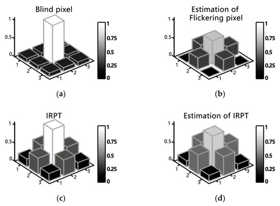 Finally, we set up a visual feature model of blind pixels (VFBP model) and define as the threshold of estimation error. The results of matching VFBP model are expressed by , which is written as