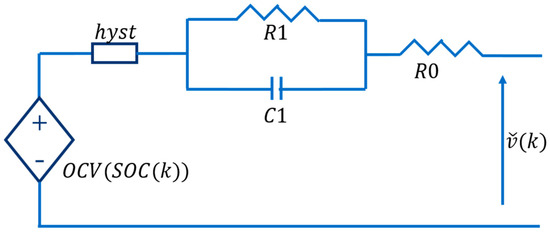 Equivalent circuit that describes the dynamic model designed for terminal voltage and voltage loss prediction [37].