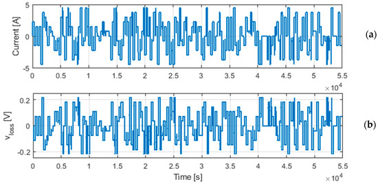 Voltage loses vloss obtained for an applied dynamic current profile. (a) dynamic current profile. (b) voltage losses.