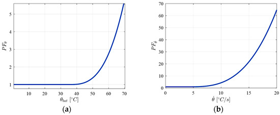 Sarvaiya et al. [22] compared different control strategies incorporating the battery ageing model in the cost function. Considering the EPA driving cycle, and a pure electric vehicle with a relatively large 9 kWh lithium-ion battery, high temperatures are not an issue, with the temperature reaching 32 °C from a 30 °C ambient temperature.