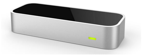 Another widely popular vision-based motion tracking sensor is the Leap Motion controller. This compact device was specially designed to track the human hands and arms at very high precision and accuracy. Alongside gaming and VR applications, the controller’s design was initially meant to replace conventional peripheral devices, such as a mouse and keyboard, and provide a more sophisticated and natural HCI. The Leap Motion controller uses two IR cameras, capturing emitted light from three LEDs with a wavelength of 850 nm. The depth data are acquired by applying unique algorithms on the raw data, consisting of infrared brightness values and the calibration data [41]. According to the manufacturer, the accuracy of position estimation is around ±0.01 mm. However, several studies show [42,43] that this is highly dependent on the conditions.
