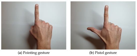 The main contribution of this work is a novel approach to the control of the collaborative robotic arm using pointing gestures. In the majority of the cited work, the researchers focus on teleoperation of the robotic arm either through movement mirroring or by binding the control of the robot to a specific gesture. The operator is not directly interacting with the (shared) workspace. The robot is controlled directly by the user, and its movements are entirely subordinate to the operator’s movements. In our approach, the operator interacts with the robot through the shared workspace, thus not teleoperating the robot directly. The robot is in the role of an assistant rather than a subordinate. Consequently, this dynamic could facilitate more effective collaboration between humans and the robotic systems. Cippolla and Hollinghurst [22] presented a gesture-based interface method that is most comparable to our approach. They similarly use pointing gestures to direct the robot’s movement. In their work, hand tracking is achieved using stereo monochromatic CCD cameras. However, their method suffers shortcomings such as the need for high contrast background and specific light conditions. Additionally, the method’s workspace is much smaller compared to our method. Our proposed concept has far more robust gesture recognition and tracking performance, additionally being able to recognize multiple gestures. Other cited works in which the user interacts with a workspace require some sort of wearable equipment. We believe the future of HRI lies in the utilization of multiple interconnected visual-based sensors with the ultimate purpose to rid humans of any additional restrictive equipment, allowing them to interact with robots as naturally and ergonomically as possible, without the need for superior technical skills. Furthermore, the core mathematical method in the proposed framework is universally applicable, not relying on the specific hardware or software.