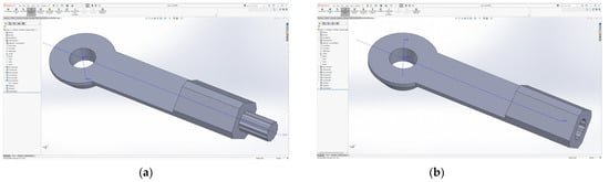 The final solution of the connecting rod resulted in the redesigning of another variant. In order to allow adjustments of the angles to be as smooth as possible, the connection of the two rods was made through a triangular groove, as can be seen in Figure 7.