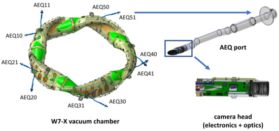 - Zoletnik, S.; Biedermann, C.; Cseh, G.; Kocsis, G.; König, R.; Szabolics, T.; Szepesi, T. First results of the multi-purpose real-time processing video camera system on the Wendelstein 7-X stellarator and implications for future devices. Rev. Sci. Instrum. 2018, 89, 013502. [Google Scholar] [CrossRef] [PubMed] [Green Version]