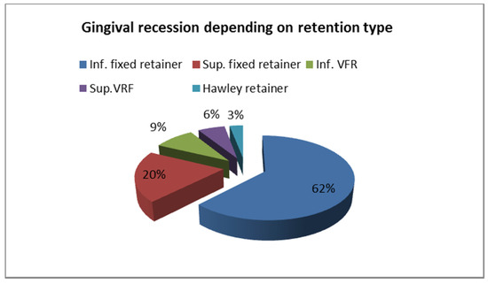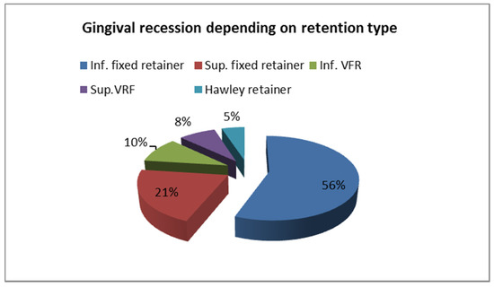 The recessions were determined on all the teeth included in retention systems as the shortest distance from the cementoenamel junction to the deepest curvature of the gingival margin by using a standard periodontal probe.