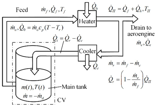 - German, B.J. A tank heating model for aircraft fuel thermal systems with recirculation. J. Propul. Power 2012, 28, 204–210. [Google Scholar] [CrossRef]