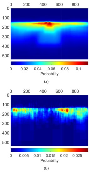 Heatmaps for the generated objects in the 2D image coordinate. (a) Vehicles. (b) Pedestrians.
