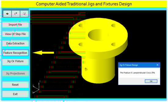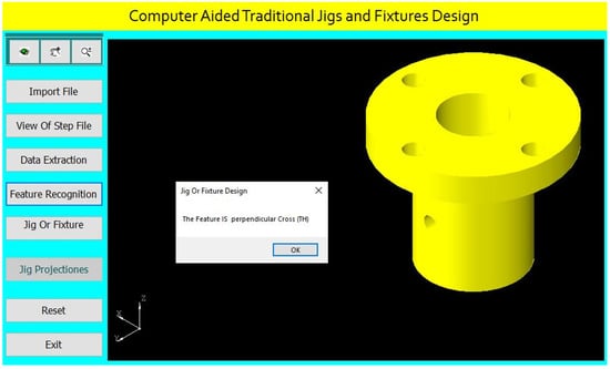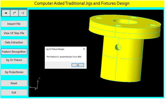 For validating the proposed methodology, it has been tested in both feature recognition and jig design of hollow cylinders with a cross-hole in various orientations. SolidWorks software is used for preparing the part drawing and saving it as a STEP AP-203 file, and then, the file is sent to Visual Basic for showing the part on a special screen. The developed system extracts data from the STEP AP-203 file, recognizes the cross-hole feature, and provides the final design of the jig for the part.