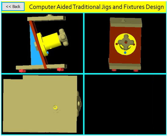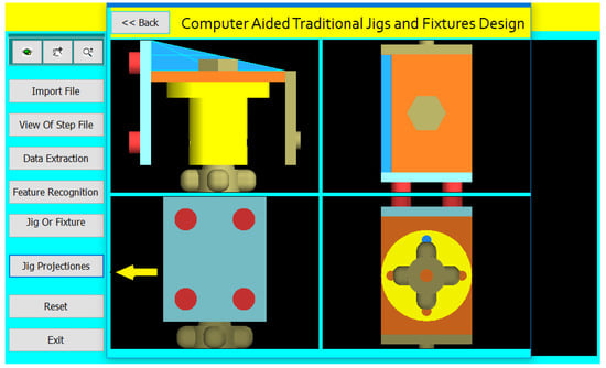 The software shows the jig views in Figure 48. The button (Jig Projections) is used to draw the jigs views on the interface screen to show the details of the design of traditional jigs and fixtures.