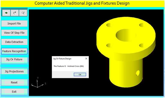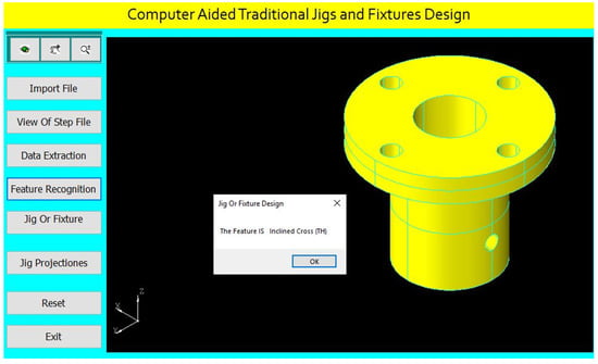 The software is also recognizing the inclined cross through-hole feature as shown in Figure 51 by applying the rules to recognize the cross-hole feature and showing a message box of the feature recognitions process.