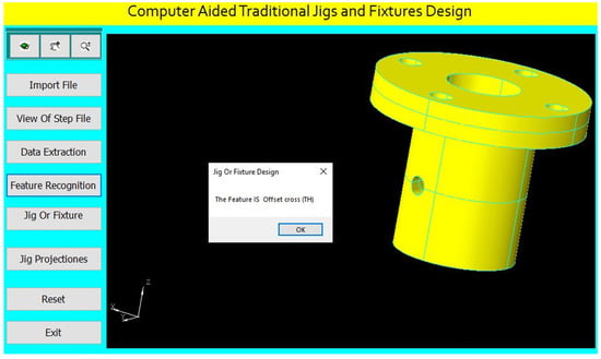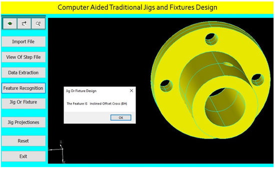 The software is also recognizing the offset cross through-hole feature as shown in Figure 46 by applying the rules to recognize the cross-hole feature and showing a message box of the feature recognitions process.