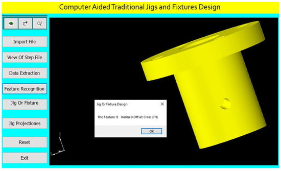 The software is also recognizing the inclined offset cross through-hole feature as shown in Figure 56 by applying the rules to recognize the cross-hole feature and showing a message box of the feature recognitions process.