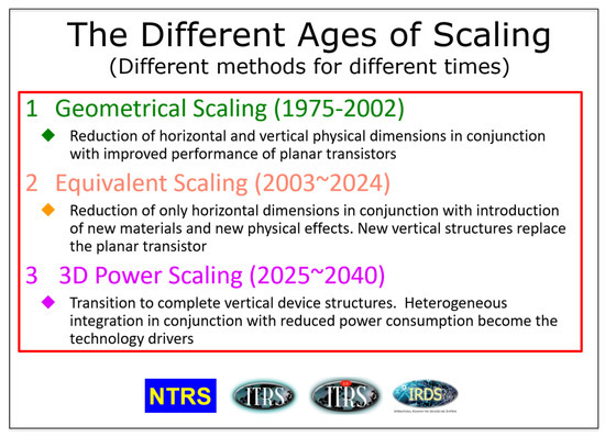 The 3 eras of transistor scaling highlighted by NTRS, ITRS, ITRS 2.0, IRDS.