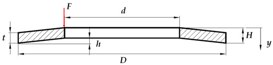 The relationship between the applied load (F) and the corresponding displacement (y) in the disc spring in Figure 7 can be described as the following equation [24]: