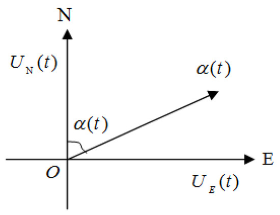 In this paper, the wind characteristic data collected by the mechanical anemometer are decomposed by the vector decomposition method, and the horizontal wind speed and direction are decomposed to the orthogonal N and E coordinate axes directions as shown in Figure 5, and the decomposition expression is as follows: