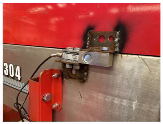 In order to achieve the purpose of variable formula fertilization, the DYDW-011 cantilever beam sensor (range 1000 kg) produced by Dayang Sensor Company was selected in this study. It has the characteristics of stable and reliable performance and high precision. The bottom surface of each fertilizer tank is supported by 4 cantilever beam sensors. One end is fixed on the frame, and the other end bears the fertilizer gravity of the fertilizer tank. During the installation process, it is necessary to ensure that the force of the four connection points of each fertilizer tank is basically the same (as shown in Figure 4). The change in the amount of fertilizer in the fertilizer tank will cause the pressure sensor signal to change. When the PLC controller performs signal acquisition, it adopts the proportional measurement method. In order to eliminate the influence of uneven fertilizer in the fertilizer tank or the tilt of the fertilizer tank on the measurement results of the pressure sensor, the signal value of the pressure sensor is filtered, scaled, and non-linearly corrected. Then the equation for calculating the weight of each fertilizer tank is: