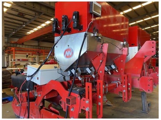 In order to solve the above problems, scholars have proposed a two-variable fertilization method. That is to control the amount of fertilizer by adjusting the opening of the fertilizer outlet and the speed of the fertilizer shaft. ALAMEEN et al. [] realized automatic adjustment of the opening of the fertilizer outlet through the air cylinder. Based on this, a two-variable fertilization control system was developed. Liu Chengliang et al. [] designed a dual-variable (fertilizer outlet opening, fertilizer shaft speed) adjustable fertilization control system. Zhang Lixin et al. [,] developed a variable fertilizer applicator and used tractor as power source. It could realize the dual-variable adjustment of the speed of the fertilizer shaft and the opening of the grooved wheel. The two-variable fertilization method greatly improves the range and accuracy of fertilization. It effectively improves the accuracy and flexibility of variable fertilization control. However, it faces the same problem as the univariate fertilizer method, that is, only single fertilizer and compound fertilizer can be applied. European and American technology companies, RDS, CASE, Ag Leader, etc., developed and have been put on the market. After continuous practice, it was proved that precise fertilization can reduce the application of fertilizer and improve the quality of crops. Among them, N, P, K split application was more conducive to controlling the amount of fertilizer on demand and reducing fertilizer waste, and had strong practicability and promotion value [,]. The above results play an important role in further research on the mixing of various fertilizers in different proportions. It can effectively realize accurate variable fertilization.