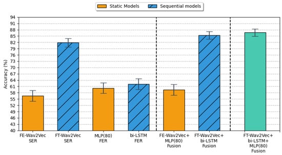 Although voice is a crucial indicator of a subject’s emotion, other modalities could enhance the SERs’ performance, as demonstrated by Singh et al. in [33], which incorporated textual features to supplement the speech emotion recognizer. In our scenario, we included the visual information of the facial expressions.