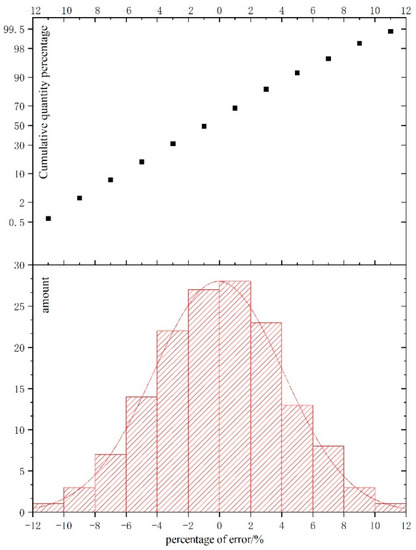 The calculated values of stress in edge main cables are between 629.9 MPa and 732.6 MPa, while the values of stress that occurred in analysed cables range from 673.7 MPa to 707.2 MPa. As seen from the figure, the maximum error between the measurement and theoretical analysis is 11.3%, while all errors obey normal distribution. This conforms to the standard of the specification. Because the breaking stress of FAST main cables is 1860 MPa, the overall cable net is still at a low level of stress and has a high safety factor. This result proves the accuracy of the above-mentioned FAST model update method. The reliability of the new model is verified, which provides a guarantee for the subsequent construction and regular operation of the PHM system.