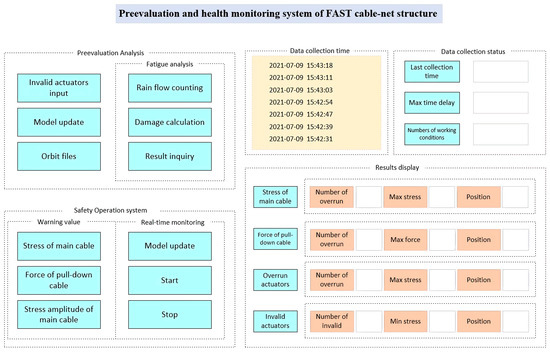 In order to take advantage of the theoretical results, a PHM system for FAST was developed and derived from the updated MST model. The system consists of a pre-evaluation system and a health monitoring system. The framework diagram is shown in Figure 7.