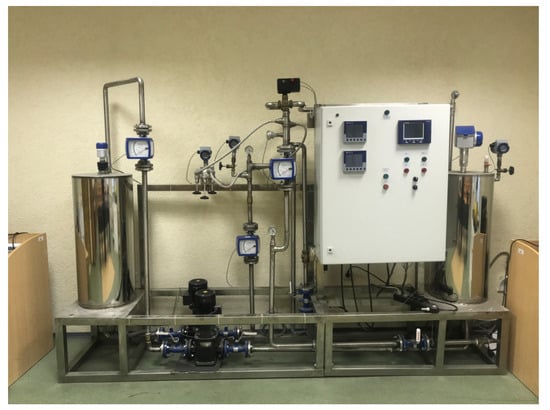 The following is a list of equipment from the installation: 2 Grundfos pumps, 2 tanks, heat exchanger, pipeline section, valves, sensors, and electric actuators. The sensors displayed the status of such indicators as the flow, temperature, pressure, and pressure drop.